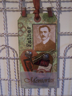 lovely tag you made i like those earthy colours. teh use of those clips at the top is brilliant .